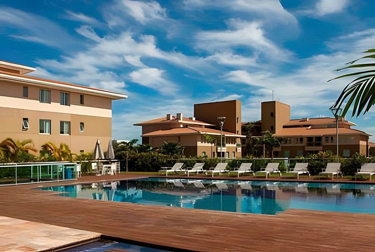 Aproveite um dos melhores resorts s de Brasília, próximo ao lago! Apartamento de 36m² dispõe de uma cama de casal, sofá-cama casal e dois colchões. Além da beleza, o resort, oferece várias opções de lazer como piscinas climatizadas. Local fica a 5 minutos do centro de Brasília, próximo à residência oficial do Presidente da República (1.3 km), Congresso Nacional, praça dos três poderes...