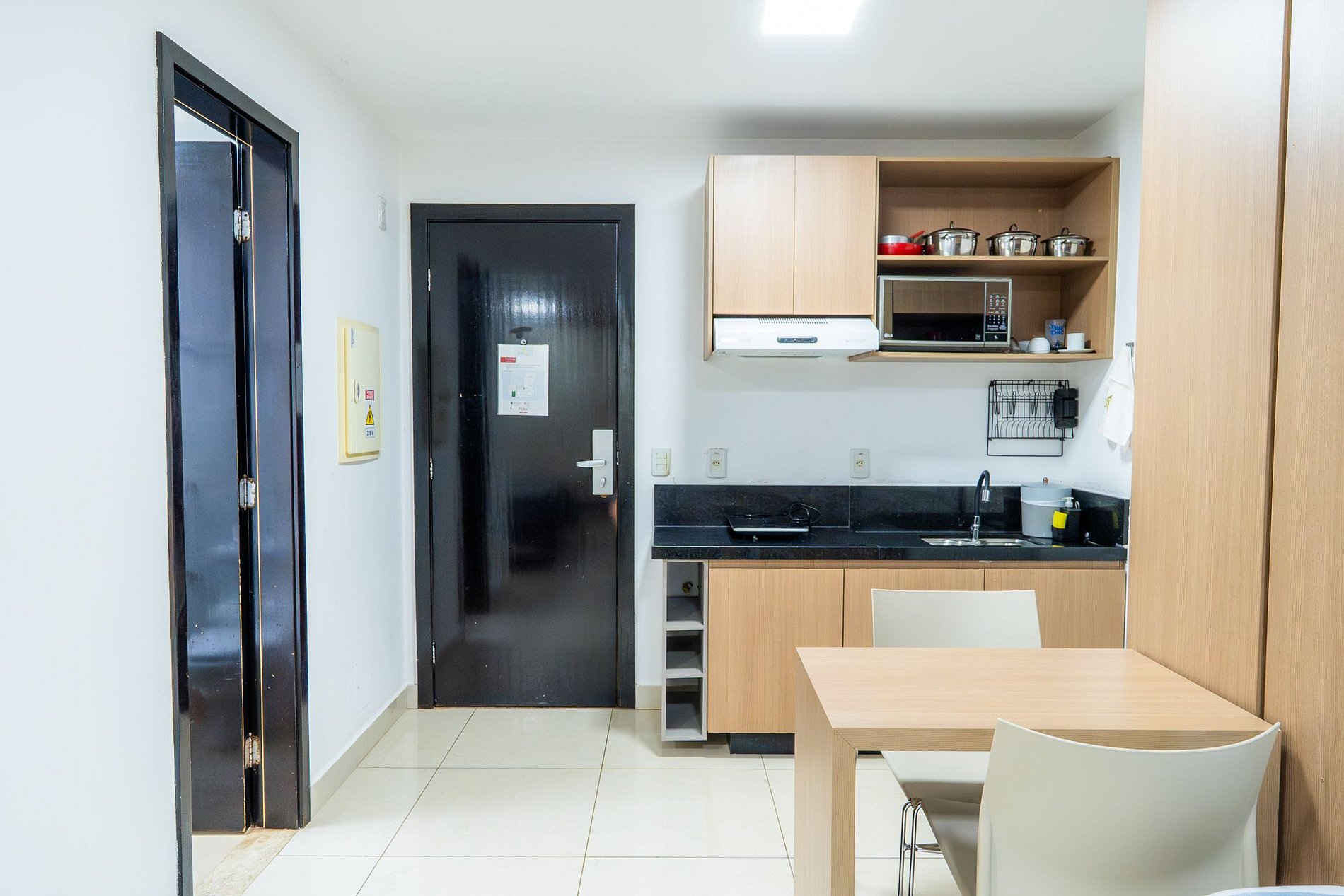 Apartamento de 36m² no térreo possui cama de casal queen, sofá cama casal e dois colchões, banheiro e cozinha equipada com geladeira, fogão duas bocas, sanduicheira, utensílios de cozinhas básicos como panelas, copos, pratos e talheres. Ferro de passar disponível mediante solicitação prévia. Tv com Globo Play. *Piscina climatizadas disponíveis para acesso dos hóspedes. Direito a uma vaga de garagem no estacionamento rotativo do condomínio.