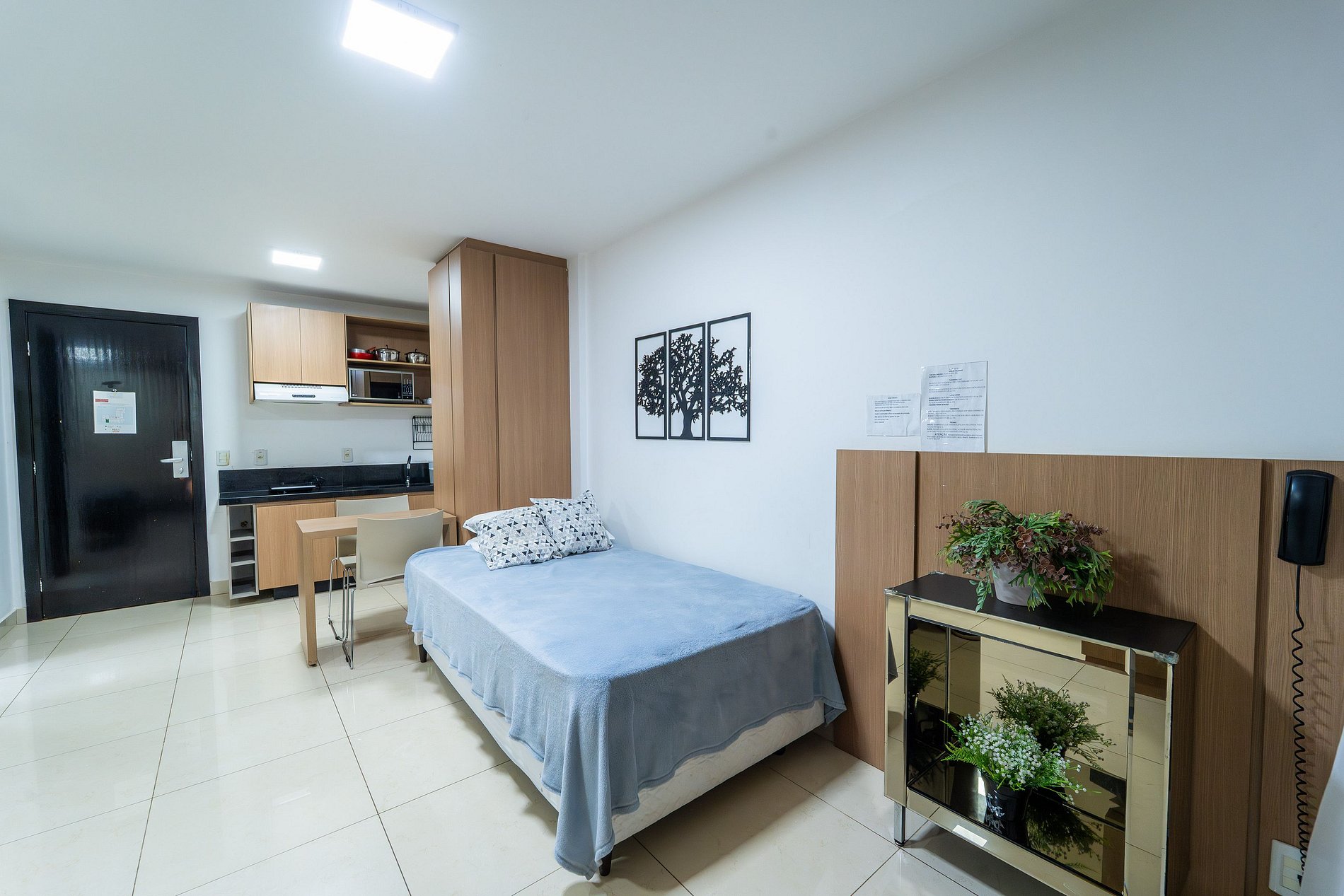 Aproveite um dos melhores resorts s de Brasília, próximo ao lago! Apartamento de 36m² dispõe de uma cama de casal, sofá-cama casal e dois colchões. Além da beleza, o resort, oferece várias opções de lazer como piscinas climatizadas. Local fica a 5 minutos do centro de Brasília, próximo à residência oficial do Presidente da República (1.3 km), Congresso Nacional, praça dos três poderes...