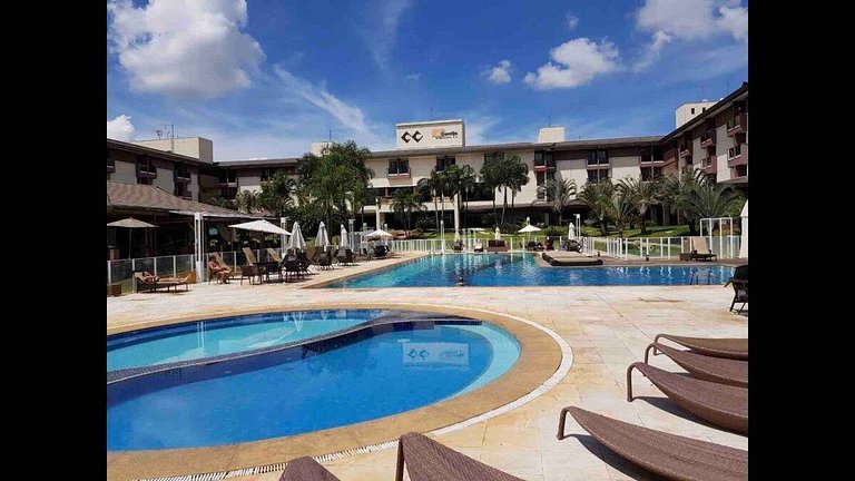 Apartamento de 24m² possui cama de casal queen com duas camas auxiliares embaixo, banheiro e cozinha equipada com geladeira, fogão uma bocas de indução, sanduicheira, utensílios de cozinhas básicos como panelas, copos, pratos e talheres. Ferro de passar disponível mediante solicitação prévia. Tv com Globo Play. *Piscina aquecidas disponíveis para acesso dos hóspedes mediante autorização (pulseira) na recepção no ato do check-in. Direito a uma vaga de garagem no estacionamento rotativo do condomínio. Resort possui também acesso ao lago, onde é possível o hóspede alugar caiaque e stand up paddle. **Não está incluso na reserva o valor do aluguel. ***Pet é aceito em nossas acomodações porém é cobrada uma taxa de R$40,00 diária por animal a parte através do aplicativo.