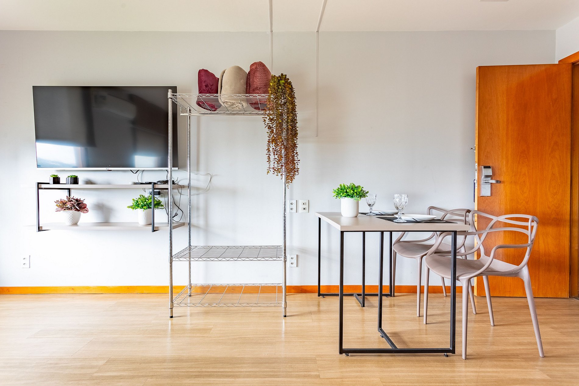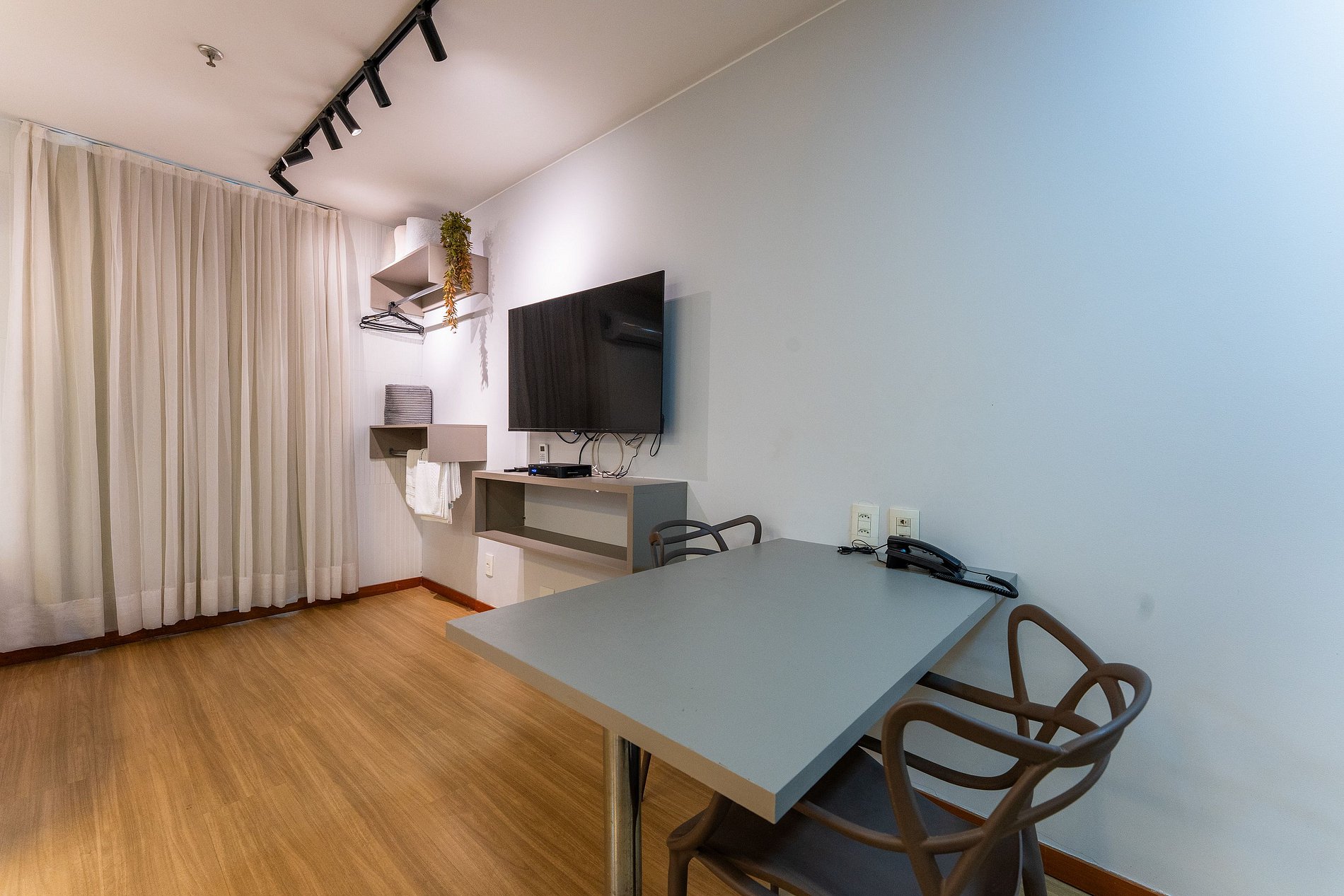 Espaço amplo 33 metros, pequena cozinha para lanches e refeições rápidas, TV 58 polegada Wi fi, e Tv a cabo