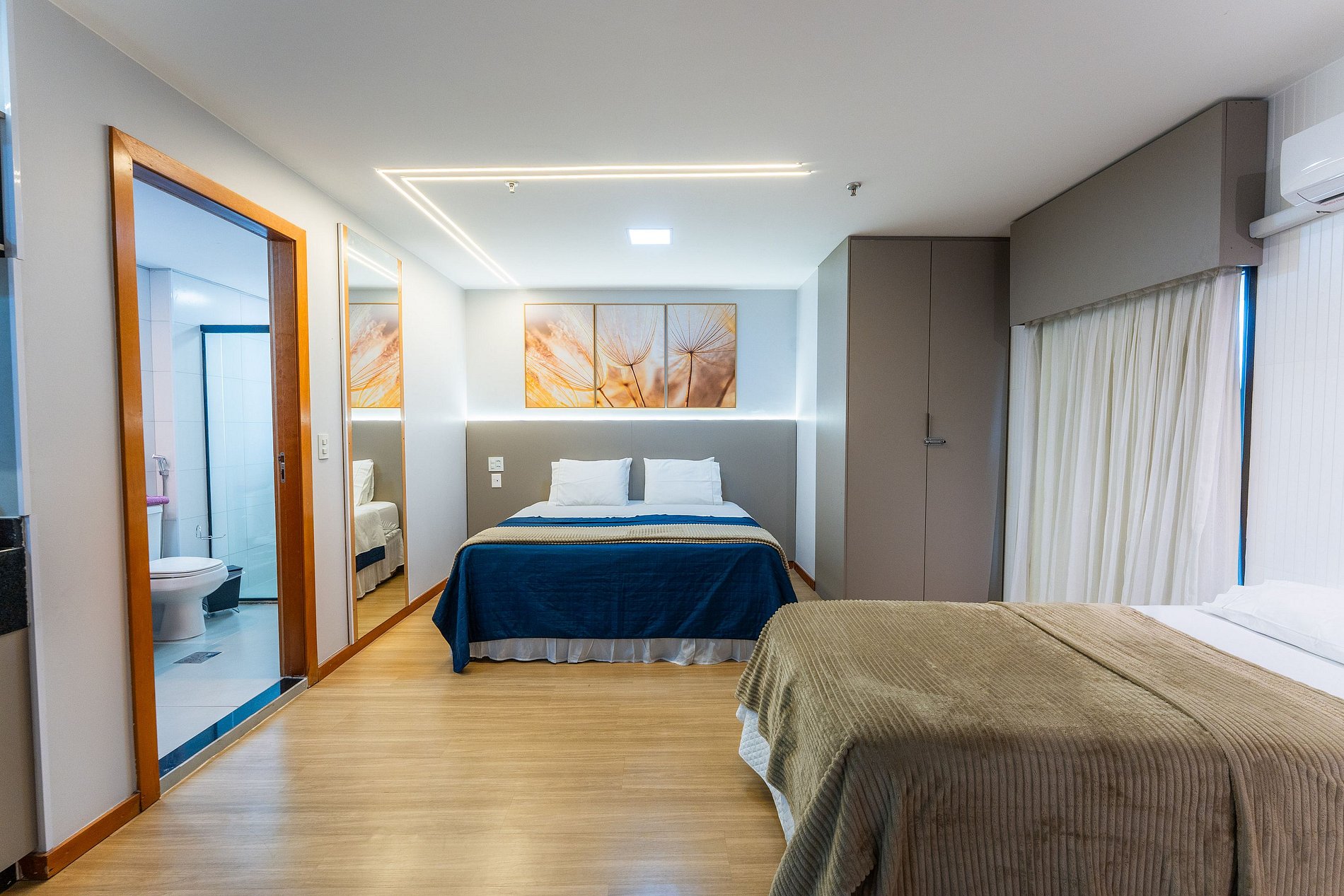 Informamos que, para reservas realizadas após as 15 horas para check-in no mesmo dia, os quartos serão preparados com acomodações padrão para dois hóspedes.