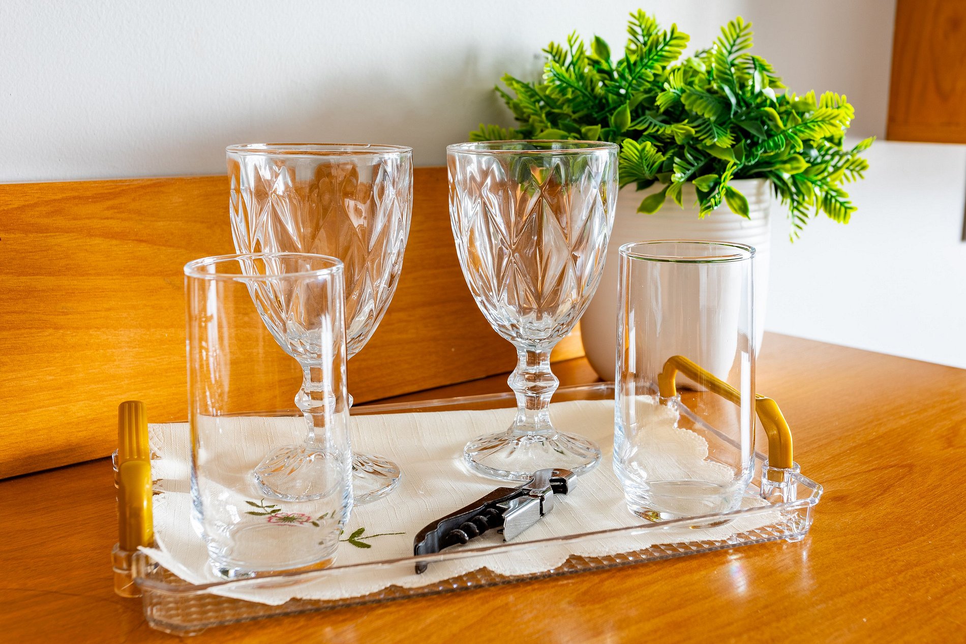 Deixamos as louças como cortesia , é obrigação dos hóspedes mantê-la limpas , o serviço de quarto não tem a obrigação de lavar as louças, caso preferir , podemos tirar a louça.
