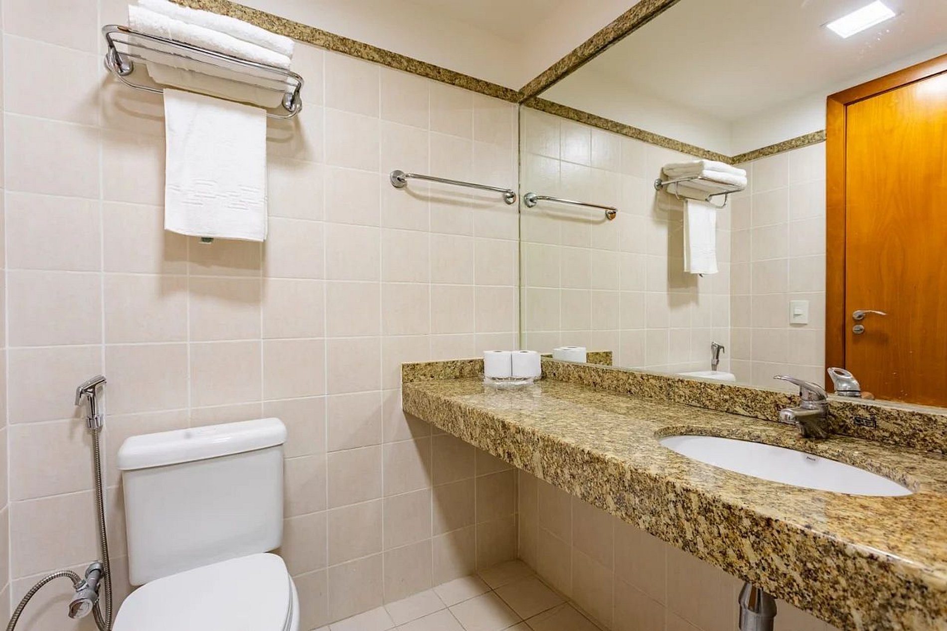 No apartamento, além do conforto e praticidade que você encontrará dentro do próprio espaço, os hóspedes também têm acesso irrestrito a todas as áreas de lazer do prédio. Isso inclui a sauna, a piscina, e a academia, onde podem relaxar e se exercitar à vontade. Para momentos de convívio social, a área comum oferece uma recepção acolhedora e um restaurante excelente, garantindo que cada estadia seja tanto confortável quanto agradável. Com essas facilidades à disposição, seus momentos de lazer e descontração estarão sempre garantidos.