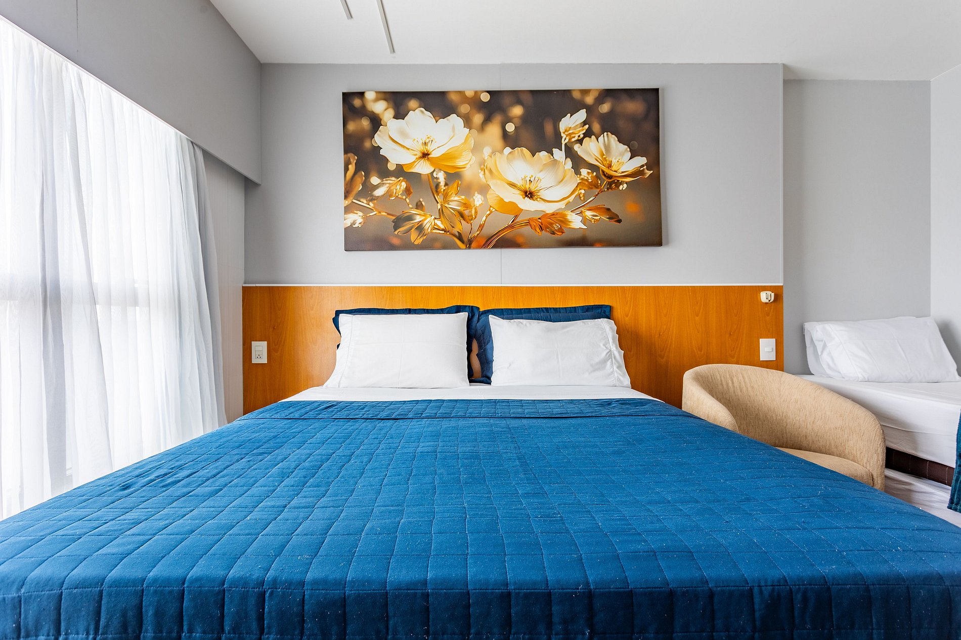 Nosso hotel foi projetado pensando no seu conforto e bem-estar. Nossos quartos acolhedores oferecem uma atmosfera relaxante, onde você pode descansar após um dia agitado.